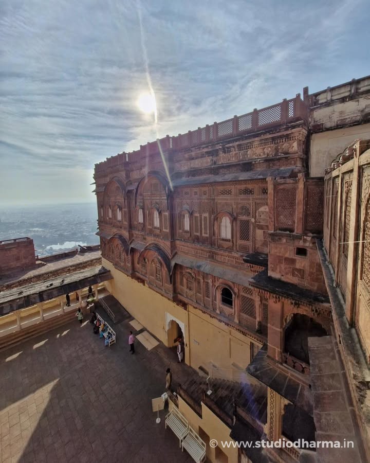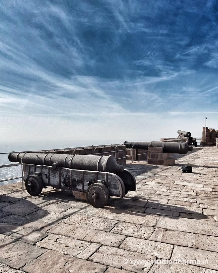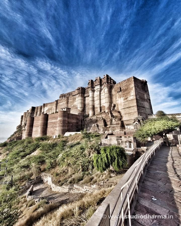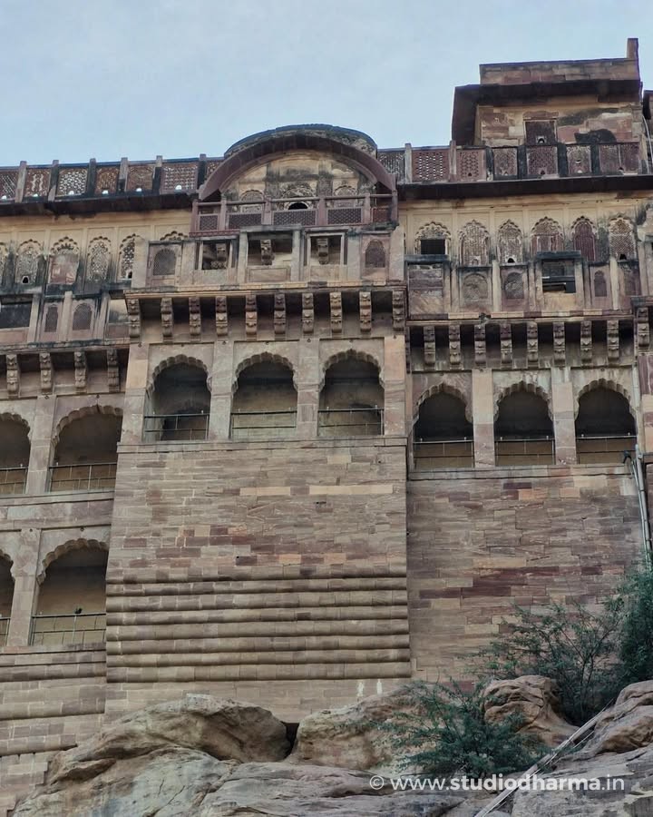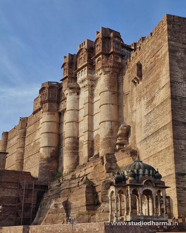 𝓜𝓮𝓱𝓻𝓪𝓷𝓰𝓪𝓻𝓱 𝓕𝓸𝓻𝓽, 𝓙𝓸𝓭𝓱𝓹𝓾𝓻. A Fortress That Never Fell Rising dramatically above the blue city, Mehrangarh Fort stands as one of India’s most formidable medieval strongholds. Built in 1459 by Rao Jodha, the fort marked the shift of the Rathore capital from Mandore to Jodhpur, chosen for its natural defense atop a rocky hill rising nearly 400 feet above the plains. The name Mehrangarh comes from Mehr (sun) and Garh (fort), reflecting the Rathore clan’s legendary descent from Surya, the Sun God. Local tradition records that the hill, once called Bhakur-Cheeria, was occupied by a hermit, Cheeria Nathji. When displaced, his curse threatened the fort’s future—an omen believed to have been ritually neutralized through the voluntary sacrifice of Raja Ram Meghwal, whose memory still echoes in the fort’s oral history. What makes Mehrangarh extraordinary is its military record. Despite repeated attacks over centuries, the fort was never fully conquered. Its massive walls—some over 68 feet thick—enclose palaces such as Moti Mahal and Phool Mahal, added gradually by more than twenty Rathore rulers, creating a layered architectural narrative spanning five centuries. Today, Mehrangarh is preserved and managed by the Mehrangarh Museum Trust, housing one of India’s finest collections of arms, textiles, paintings, and royal artifacts. From its ramparts, the city below appears timeless—just as the fort itself remains, undefeated and enduring. Explore India’s layered past through ITIHASNAMA by StudioDharma, a premium coffee table book celebrating heritage, architecture, and forgotten histories through powerful visuals and storytelling. Purchase link: मेहरानगढ़ किला, जोधपुर अडिग, अजेय और कालजयी राजस्थान की नीली नगरी जोधपुर के ऊपर ऊँची चट्टान पर स्थित मेहरानगढ़ किला, 1459 ईस्वी में राव जोधा द्वारा निर्मित एक अभेद्य दुर्ग है। मंडोर से राजधानी स्थानांतरित करते समय इस स्थल का चयन इसकी प्राकृतिक सुरक्षा के कारण किया गया था। लगभग 400 फीट की ऊँचाई पर स्थित यह किला राठौड़ों की शक्ति और दूरदृष्टि का प्रतीक बन गया। मेहरानगढ़ नाम मेहर (सूर्य) और गढ़ से मिलकर बना है, जो राठौड़ वंश की सूर्यवंशी परंपरा को दर्शाता है। लोककथाओं के अनुसार, यह पहाड़ी पहले चीरिया नाथजी नामक साधु का निवास थी, जिनके विस्थापन के बाद किले की नींव से जुड़ी मान्यताएँ आज भी इतिहास का हिस्सा हैं। कई युद्धों और घेराबंदियों के बावजूद यह किला कभी पराजित नहीं हुआ। मोटी प्राचीरों के भीतर बने मोती महल और फूल महल जैसे स्थापत्य, पाँच शताब्दियों में विकसित हुए राठौड़ इतिहास की परतें खोलते हैं। आज यह किला एक संग्रहालय के रूप में जीवित विरासत है, जहाँ मारवाड़ का शौर्य सुरक्षित है। ITIHASNAMA by StudioDharma भारत की विरासत, स्थापत्य और भूली-बिसरी ऐतिहासिक कहानियों को समर्पित एक प्रीमियम कॉफी टेबल बुक है। खरीदने के लिए लिंक: