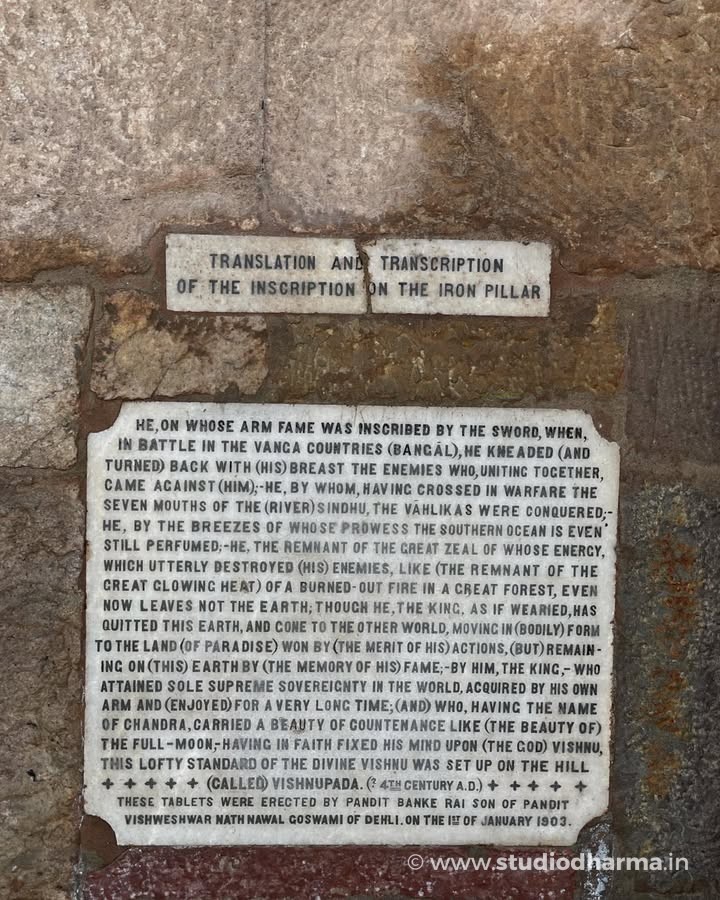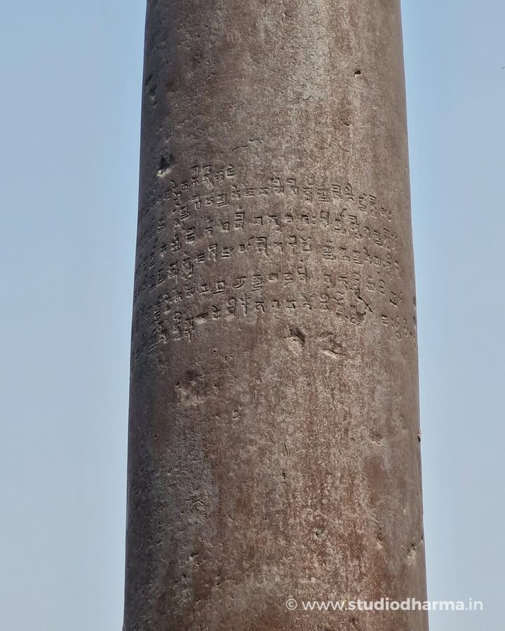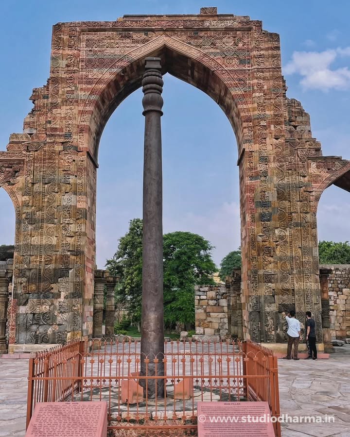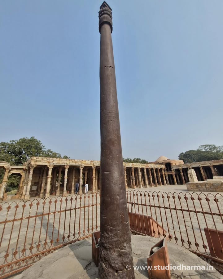 𝓣𝓱𝓮 𝓘𝓻𝓸𝓷 𝓟𝓲𝓵𝓵𝓪𝓻, 𝓠𝓾𝓽𝓾𝓫 𝓒𝓸𝓶𝓹𝓵𝓮𝔁, 𝓜𝓮𝓱𝓻𝓪𝓾𝓵𝓲. A 1,600-Year-Old Mystery That Refuses to Rust Standing quietly within the Qutub Minar complex at Mehrauli, Delhi, the Iron Pillar is one of India’s most extraordinary scientific and historical marvels. Rising to a height of over 7 meters and weighing more than 6 tons, this massive column of iron has stood almost unaffected by corrosion for nearly sixteen centuries. Scholars identify the pillar’s creator as “King Chandra,” widely accepted as the Gupta emperor Chandragupta II (c. 375–415 CE). The Sanskrit inscription engraved on the pillar praises his military victories and devotion to Vishnu, confirming that it was originally erected as a dhwaj (sacred standard) dedicated to Lord Vishnu during the Gupta period. Many historians believe it once stood near the Udayagiri region of central India before being relocated to Delhi. The mystery deepens with its relocation. While one tradition credits the Tomara ruler Anangapala in the 11th century, most historians associate its movement to Mehrauli with the Delhi Sultanate, likely during the reign of Sultan Iltutmish in the 13th century, when it was installed near the Quwwat-ul-Islam mosque. Despite political upheavals and environmental exposure, the pillar remained intact. What truly astonishes scientists is its metallurgy. The Iron Pillar is made of high-purity wrought iron rich in phosphorus and nearly free of sulfur and manganese. Ancient forge-welding techniques allowed its makers to create a massive structure that, over time, developed a thin protective layer of iron hydrogen phosphate hydrate (often called misawite). This passive film prevents rusting, making the pillar a global benchmark for ancient metallurgical excellence. Legends also surround it. A popular tale recorded in later traditions claims that a Tomara king attempted to uproot the pillar, believing it was a nail holding the earth in place. When blood appeared at its base, the act was abandoned, and Delhi came to be known as “Dhilli,” or loose. While folklore adds romance, the verified history of the pillar is no less remarkable. The Iron Pillar is not merely a relic of the past; it is enduring proof that ancient India possessed scientific knowledge and engineering skill far ahead of its time—knowledge that modern metallurgy continues to study with admiration. Discover more such verified and forgotten stories of India’s layered past in ITIHASNAMA by StudioDharma. Purchase link: लौह स्तंभ, क़ुतुब संकुल, महरौली सोलह सौ वर्षों से जंग को चुनौती देता एक स्तंभ दिल्ली के महरौली स्थित क़ुतुब परिसर में खड़ा लौह स्तंभ भारत की प्राचीन वैज्ञानिक और धातुकर्म परंपरा का अद्वितीय प्रमाण है। लगभग 7.2 मीटर ऊँचा और 6 टन से अधिक वज़न वाला यह स्तंभ पिछले लगभग 1600 वर्षों से बिना जंग लगे आज भी सुरक्षित खड़ा है। इसके शिलालेख में उल्लिखित “राजा चन्द्र” को इतिहासकार गुप्त सम्राट चन्द्रगुप्त द्वितीय (375–415 ई.) से जोड़ते हैं। संस्कृत में उत्कीर्ण यह लेख उनकी विजयों और भगवान विष्णु के प्रति भक्ति का वर्णन करता है, जिससे यह स्पष्ट होता है कि यह स्तंभ मूलतः विष्णु ध्वज के रूप में स्थापित किया गया था। माना जाता है कि यह पहले मध्य भारत के उदयगिरि क्षेत्र में स्थित था। बाद में इसे दिल्ली लाया गया। कुछ परंपराएँ इसे तोमर राजा अनंगपाल से जोड़ती हैं, जबकि अधिकांश इतिहासकार इसका स्थानांतरण 13वीं शताब्दी में दिल्ली सल्तनत, विशेषकर सुल्तान इल्तुतमिश के काल में मानते हैं। राजनीतिक बदलावों और मौसम की मार के बावजूद स्तंभ अडिग रहा। वैज्ञानिक दृष्टि से यह स्तंभ और भी आश्चर्यजनक है। उच्च फॉस्फोरस युक्त शुद्ध लोहे से बने इस स्तंभ की सतह पर समय के साथ एक सुरक्षात्मक परत बन गई, जिसे आयरन हाइड्रोजन फॉस्फेट हाइड्रेट कहा जाता है। यही परत इसे जंग से बचाती है और इसे प्राचीन भारतीय धातुकर्म की महान उपलब्धि बनाती है। लोककथाओं में इसे धरती को थामे रखने वाली कील बताया गया है, किंतु प्रमाणित इतिहास स्वयं इतना समृद्ध है कि किसी 