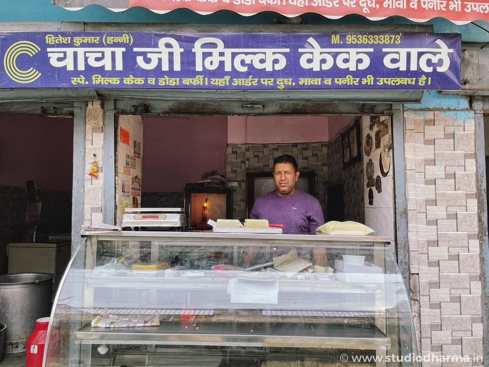 It perfectly suits Chacha Ji Milk Cake Wale of Rajban Bazaar, Meerut Cantt.