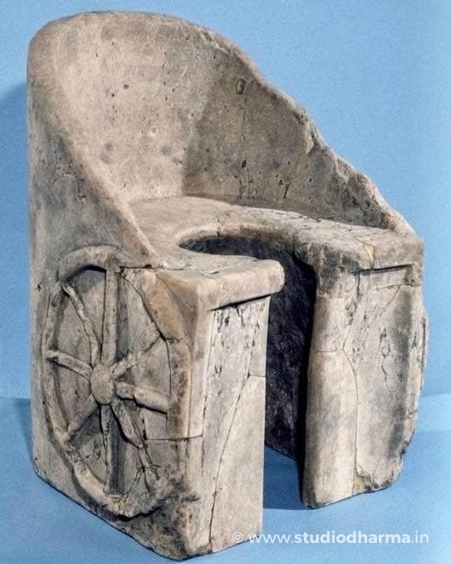 A marble Roman toilet decorated with a cart wheel 211-224 AD
