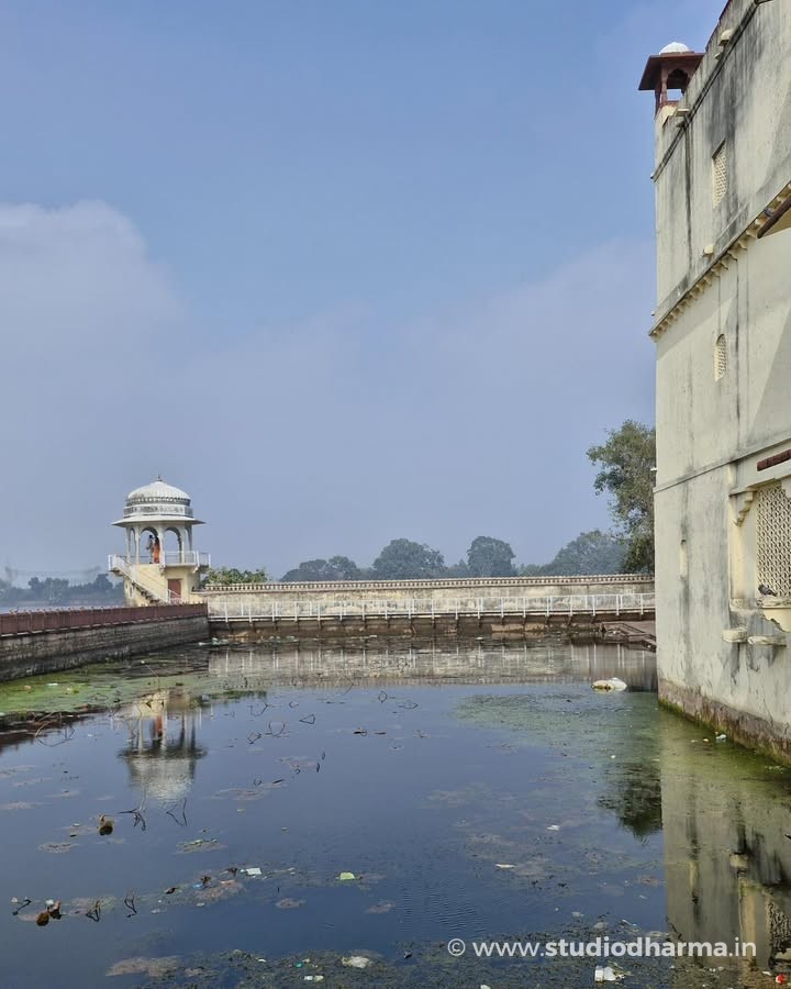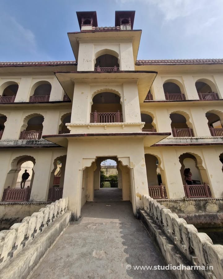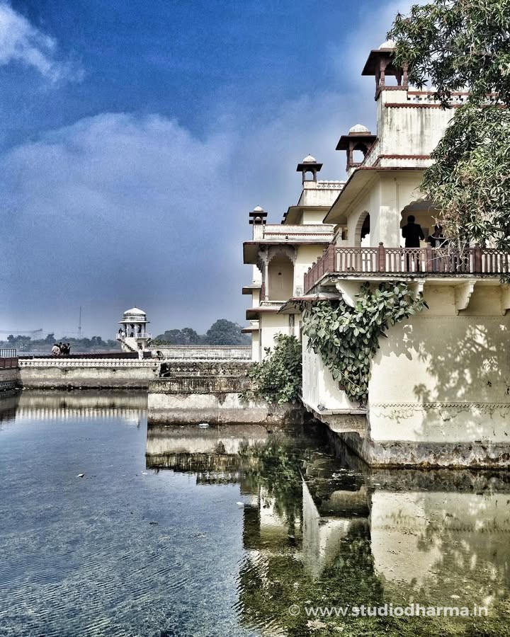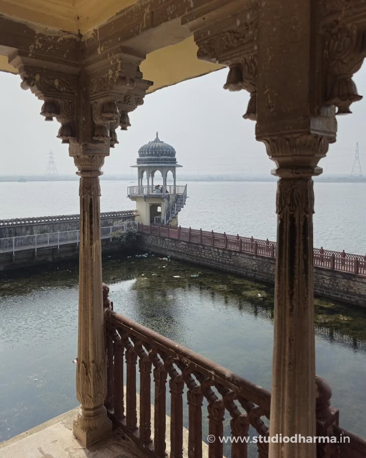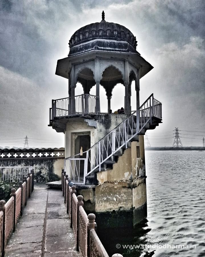 Overlooking the serene Abheda Lake, the three-storey structure functioned as a royal hunting lodge and monsoon pavilion. Contemporary descriptions and local tradition mention lotus-filled waters and even crocodiles inhabiting the adjacent tank in earlier times.