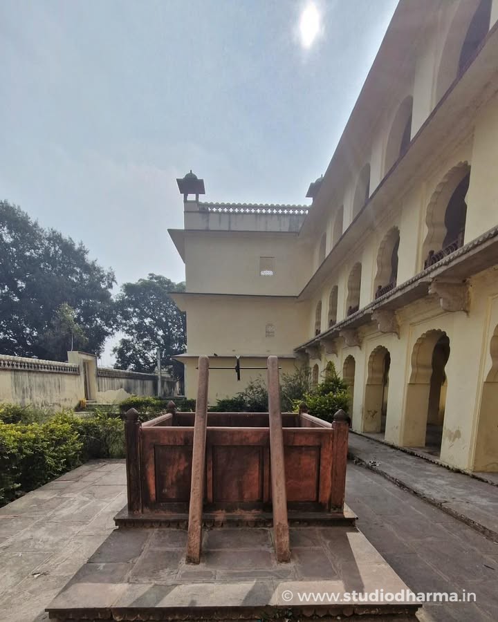 Architecturally, the palace reflects Rajput planning with Mughal stylistic influences — open pavilions, arched corridors, symmetrical courtyards, airy terraces, and lake-facing balconies designed to catch cooling breezes. Unlike the imposing fortifications of Rajasthan, this mahal represents a softer, contemplative dimension of Rajput legacy.