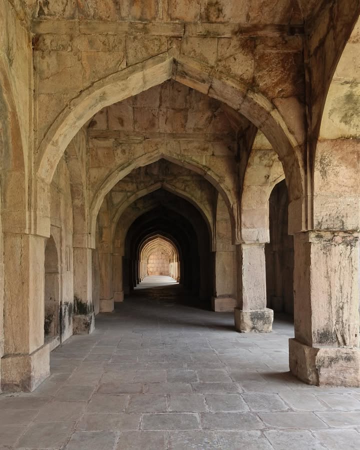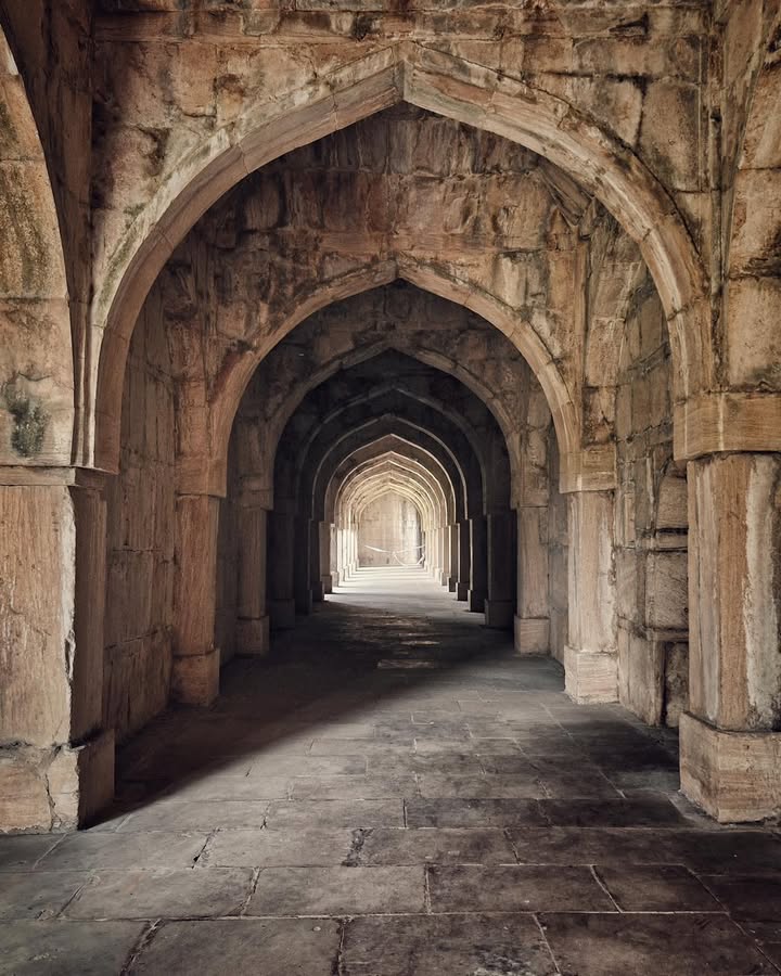 It began in the 15th century, when Sultan Mahmud Shah Khilji built it as a madrasa, a centre of Islamic learning. Students once walked through its arched corridors, studied in open courtyards, and lived in rows of modest scholar cells. Four corner towers framed the complex, giving it the scale and presence of a royal academic institution.