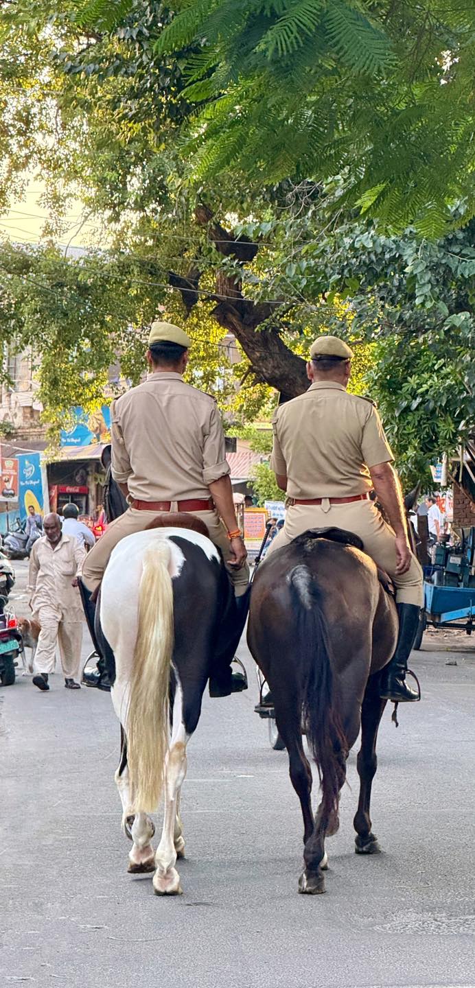 “In the pulse of Meerut’s busy lanes, these guardians on horses bring calm rhythm, weaving a timeless narrative at Bhurana Gate.”