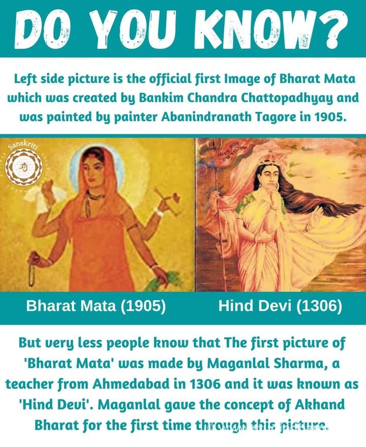 But very less people know that The first picture of 'Bharat Mata' was made by Maganlal Sharma, a teacher from Ahmedabad in 1306 and it was known as 'Hind Devi'. Maganlal gave the concept of Akhand Bharat for the first time through this picture.