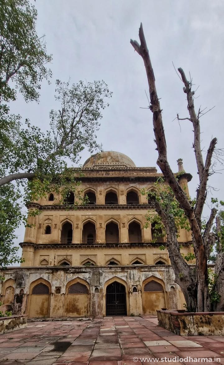 This monumental tomb, with fluted minarets, a Persian-style charbagh garden, and Quranic inscriptions, remains mostly unknown to locals today. Once richly painted with natural vegetable dyes, it now silently narrates the lost glory of Alwar’s Khanzada heritage.
