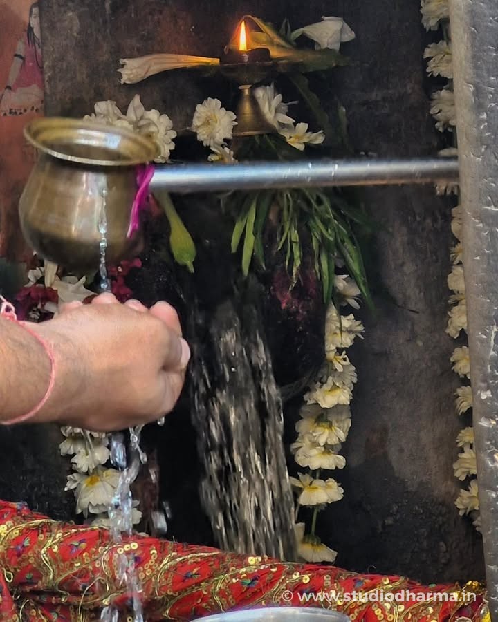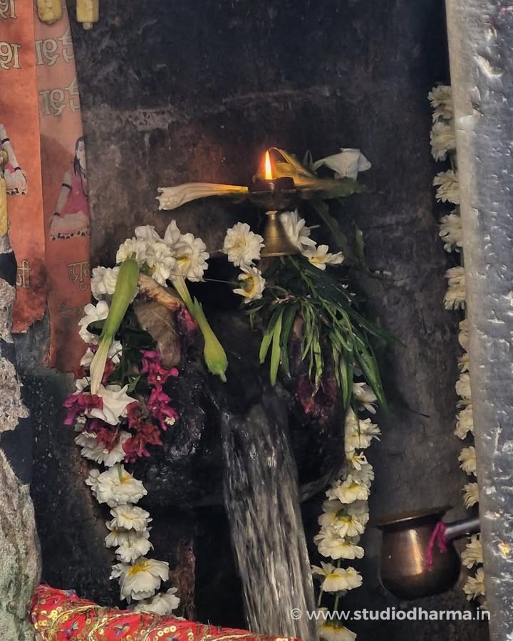 From a carved cow’s mouth, a steady stream of water flows endlessly, falling directly onto a sacred Shiva Lingam. Day and night, across centuries, this uninterrupted flow continues like a natural act of worship.