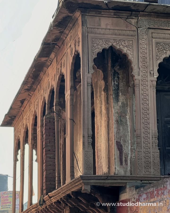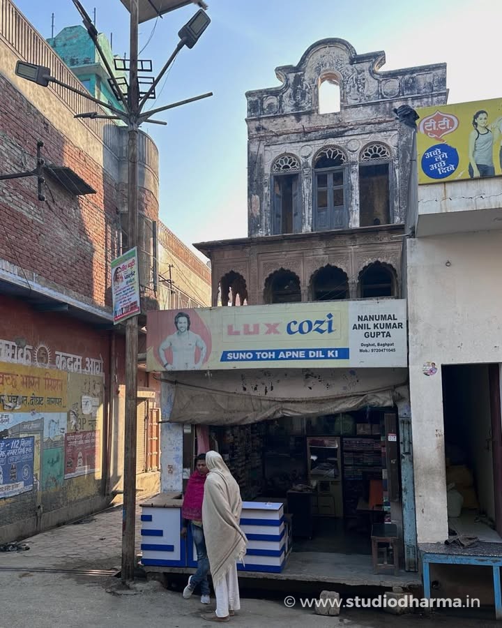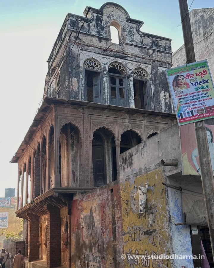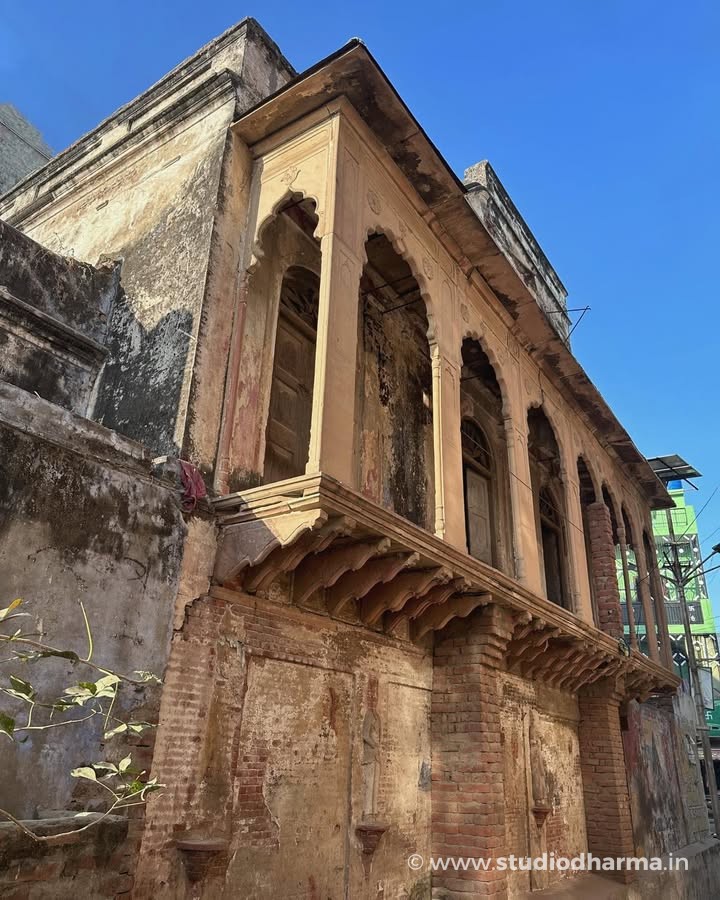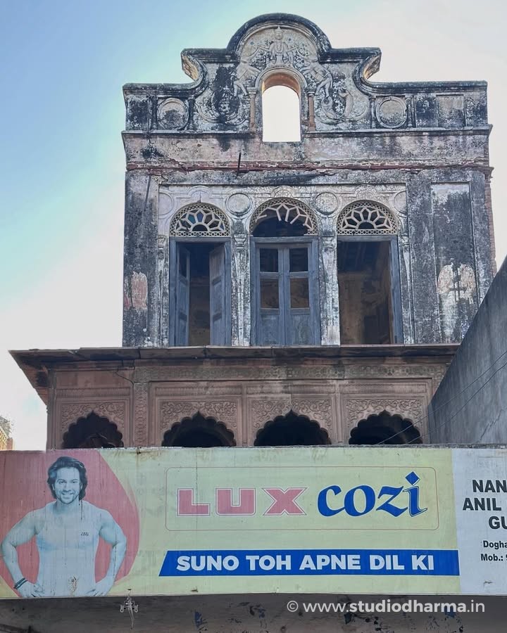 This haveli once belonged to Lala Jugal Kishore, a prosperous merchant of the region. Built during the late nineteenth or early twentieth century, the residence reflects the architectural taste of wealthy trading families of western Uttar Pradesh. Elegant arches, decorative plaster panels and the distinctive upper façade still hint at the grandeur it once possessed.