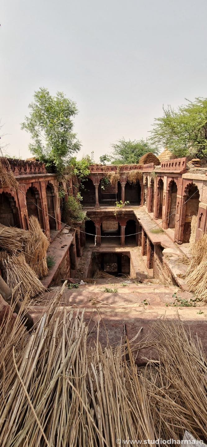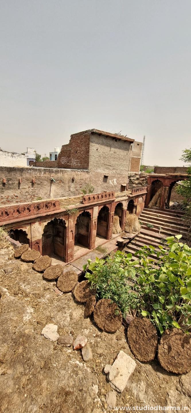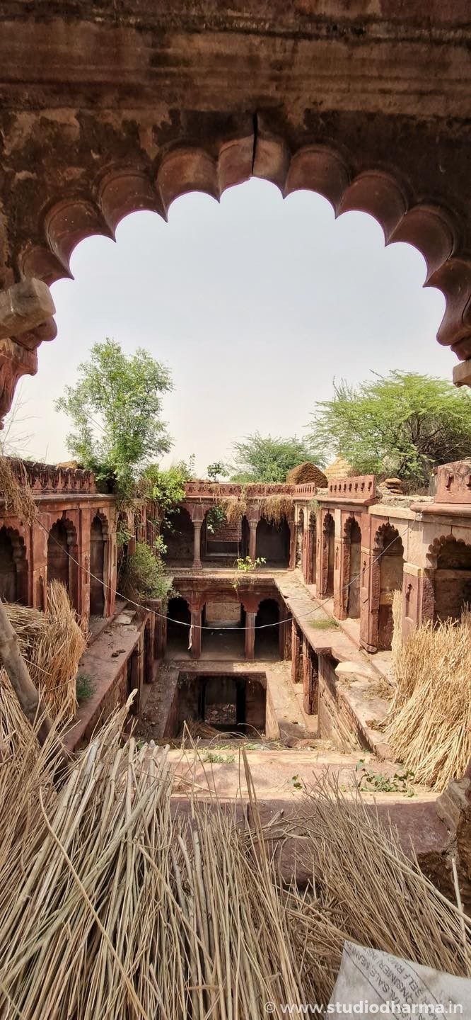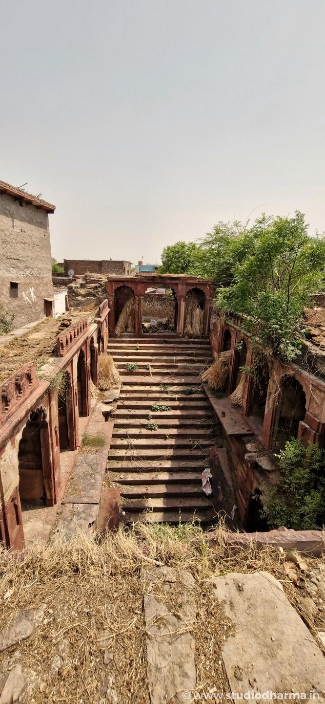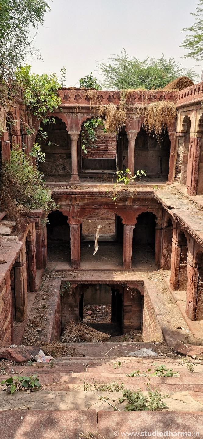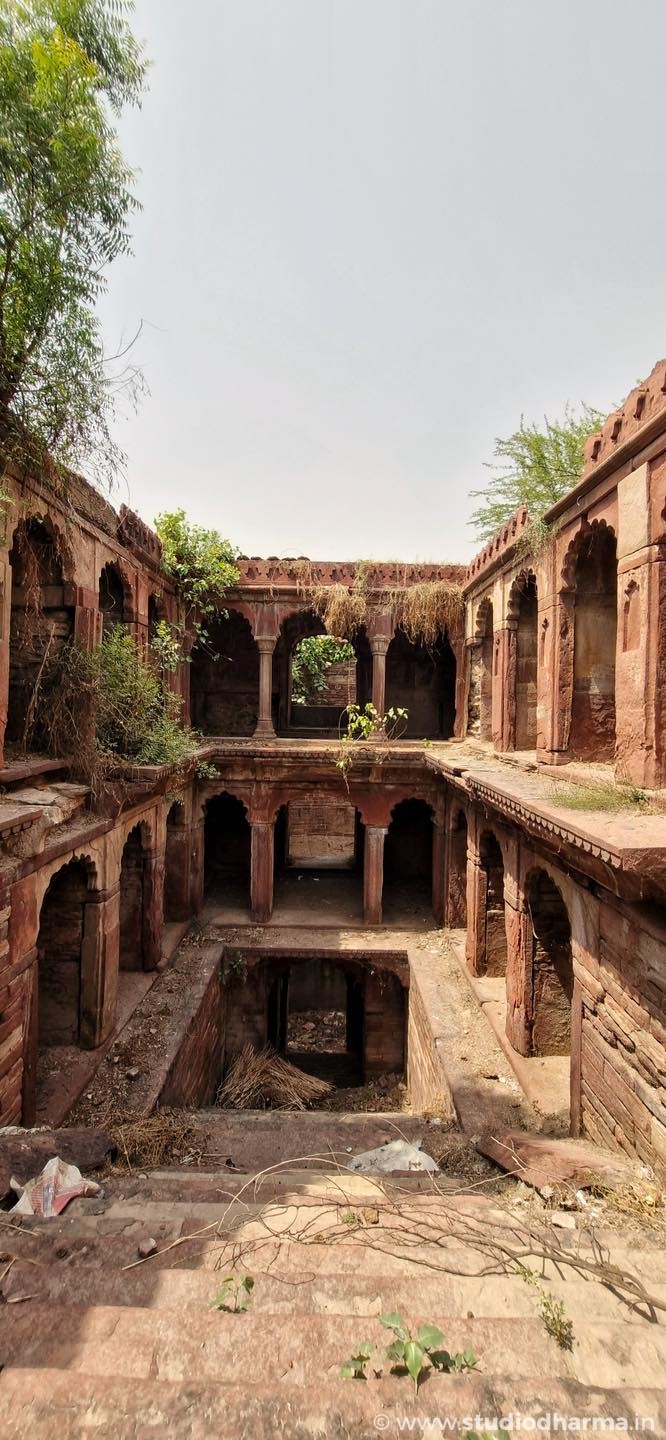 Today, though in a ruined state—its roof now used by locals and its walls marked by time—the baoli still carries the echoes of Mughal-era ingenuity. Nearby, a beautiful stepwell with pointed arches stands as a testament to medieval architecture, though now used by villagers for storage.