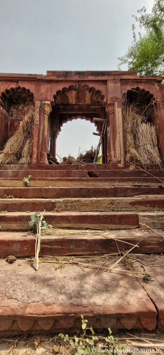Hidden amidst cultivated fields a few kilometers from Agra, lies the crumbling yet captivating Jajau Baoli (stepwell)—a red sandstone structure believed to have been built during the reign of Aurangzeb.