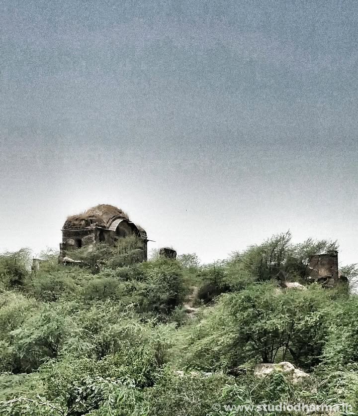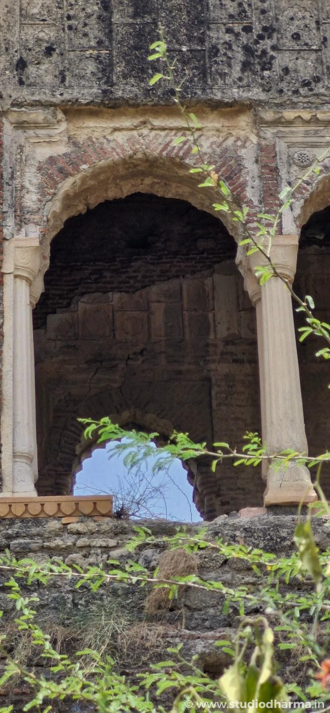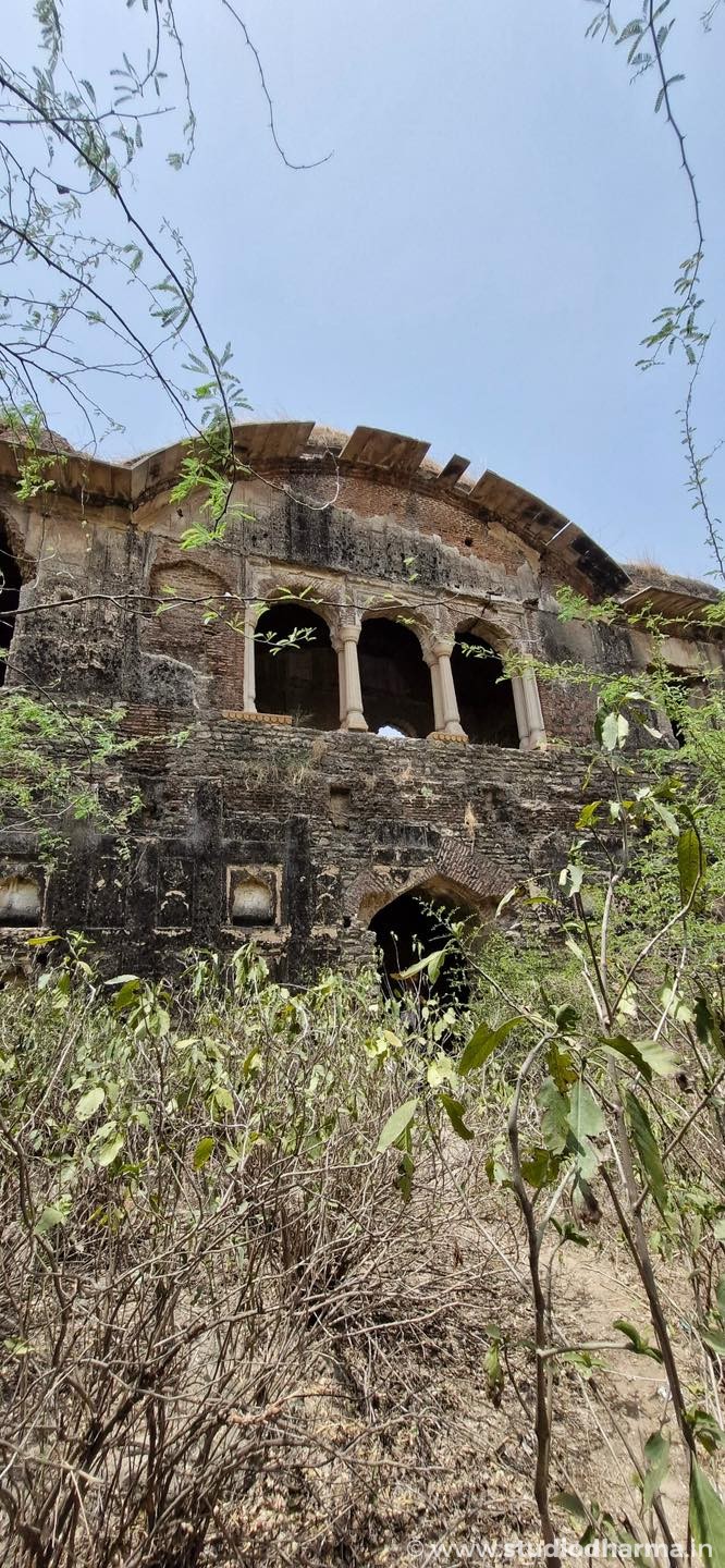 Perched 40 feet high, the fort now lies in ruins. The original inscription has gone missing — believed to have either been swept away in Yamuna floods or taken by a researcher.