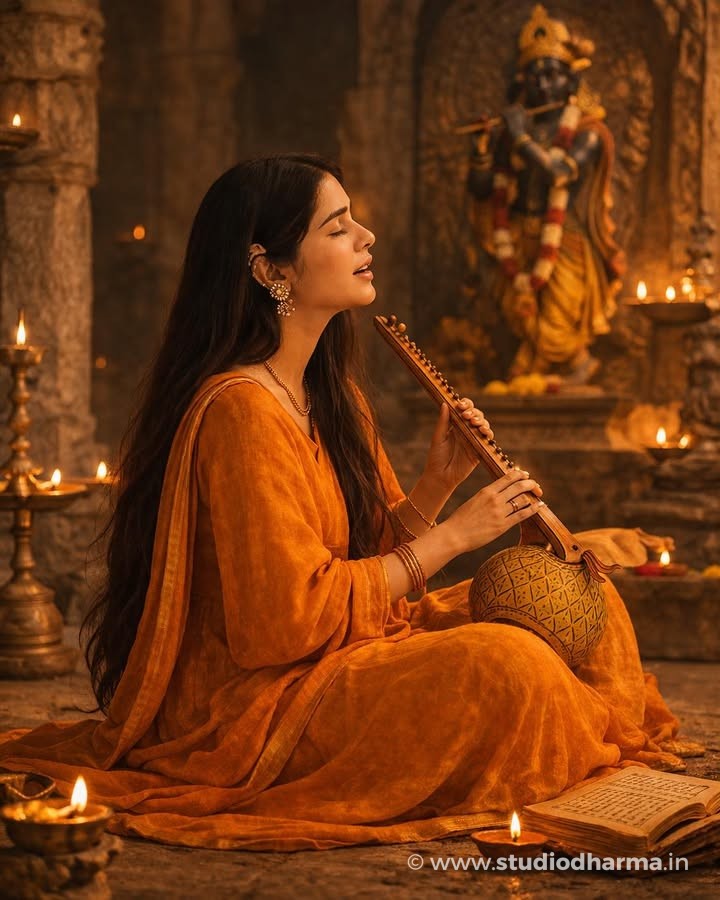 Born into a royal Rathore family and married into the house of Mewar, Meera Bai lived a life that history remembers not for her status, but for her unwavering love for Lord Krishna.