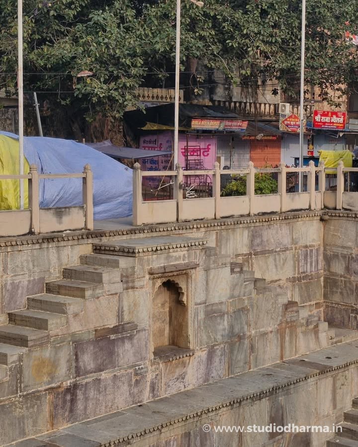 Unlike the grand and deep baoris scattered across Bundi, these kunds were designed as urban water tanks — easily accessible for townspeople. They offered respite from the desert heat, storing precious monsoon water while also becoming a social and spiritual gathering space.