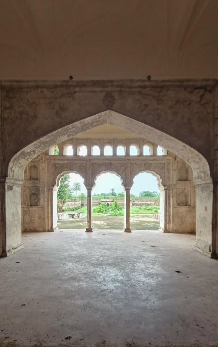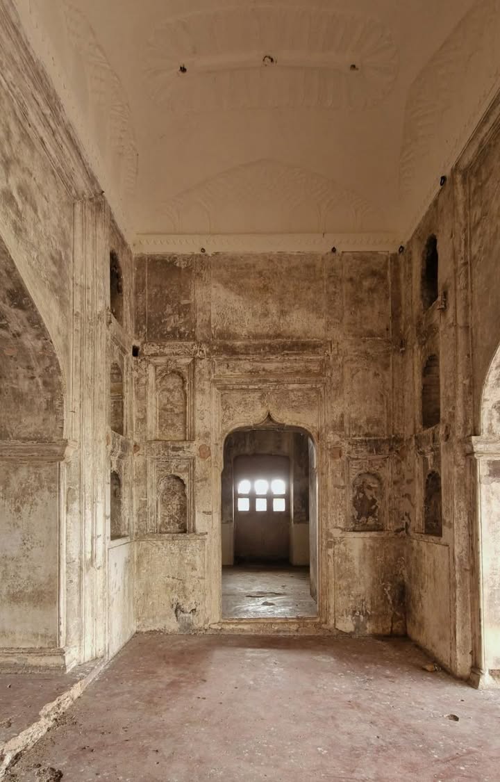 The three-storied structure features a central hall adorned with paintings of Rai Pravin in various moods, airy chambers with large windows, and gardens inspired by Mughal aesthetics. Its semi-subterranean summer room was ingeniously designed with passive cooling, keeping the interiors over 10 degrees cooler than outside.