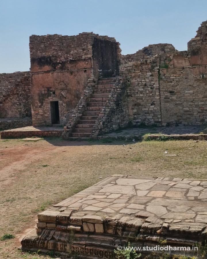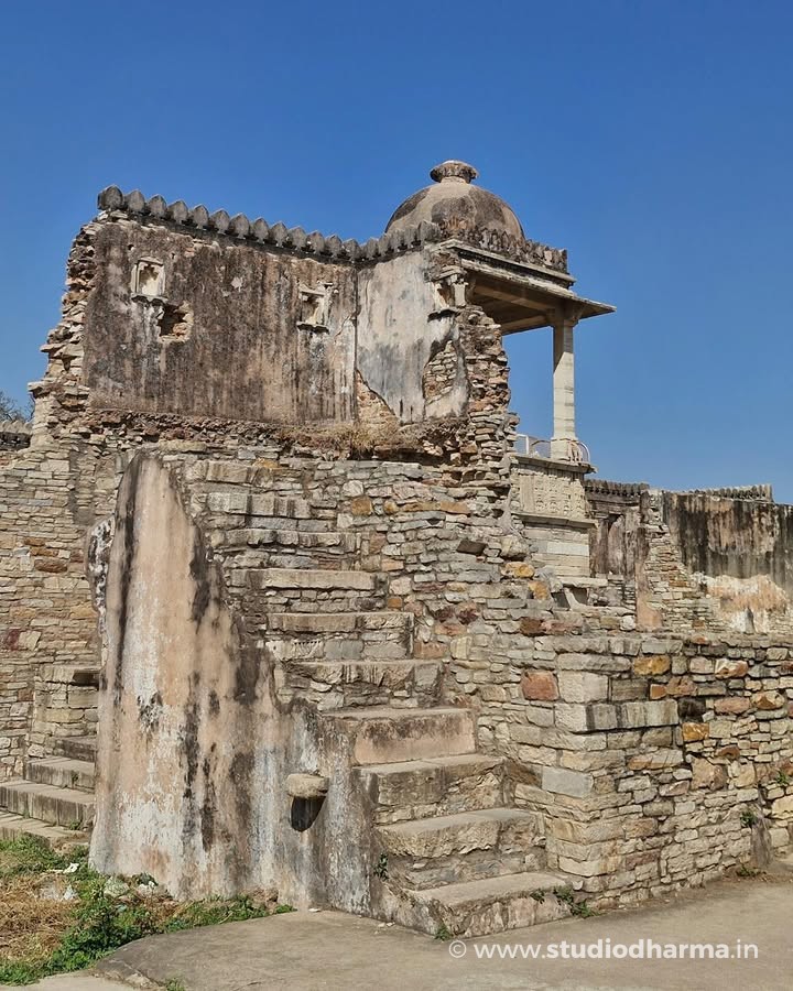 Amid its vast expanse stands the ruined yet commanding Rana Kumbha Palace, one of the largest and oldest structures within the fort. Its broken walls, silent courtyards, and shadowed passages still carry the weight of centuries.
