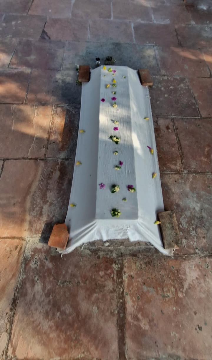 Yes — Raskhan was buried. While he accepted Krishna-bhakti and lived as a Vaishnav, he did not formally renounce Islam. Influenced by Sufi traditions, his burial follows the customary Sufi practice. His samadhi today stands as a symbol of harmony between Bhakti and Sufi traditions, respected by both Hindus and Muslims as a place of spiritual devotion.