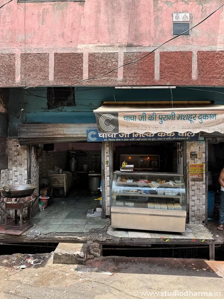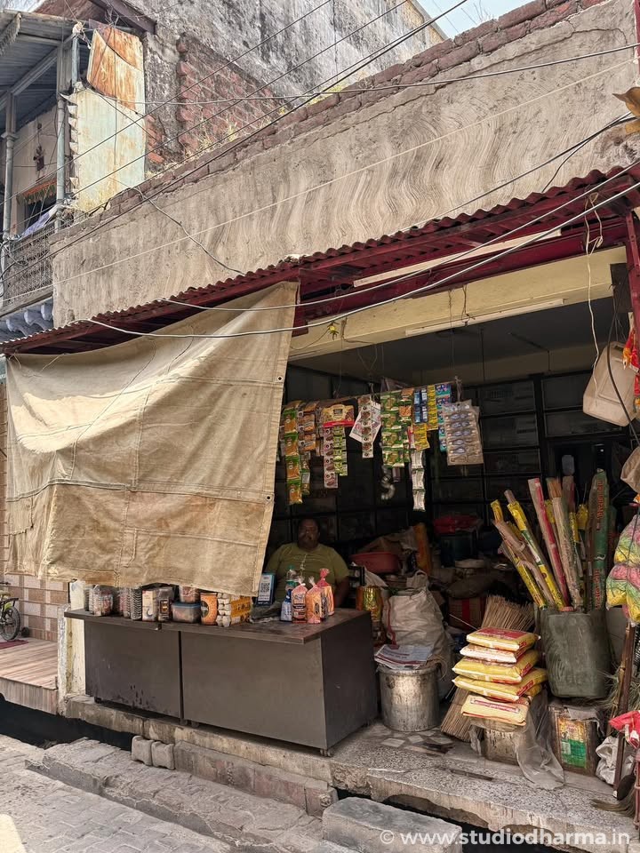 Mussadi Lal ji ki dukaan, now Santosh Provision Store, lovingly maintained by Mr. Ajay Rastogi — whose ancestors once brought grain on camelback from Rajasthan and Haryana, trading jaggery and country sugar in return.