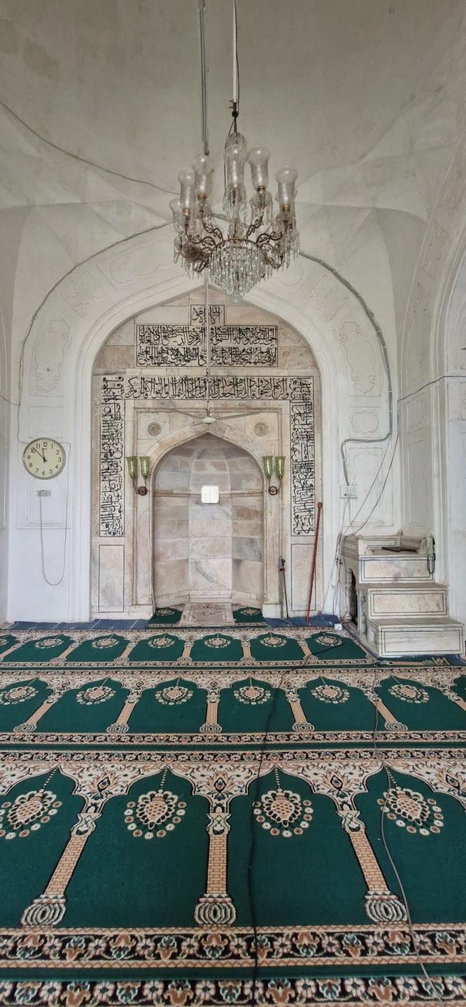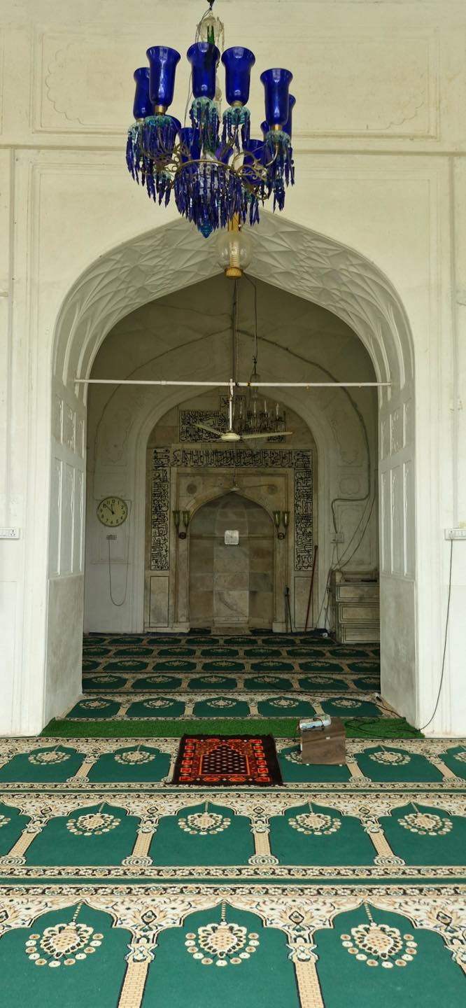 मुख्य नमाज़ कक्ष में तीन मेहराबों के माध्यम से प्रवेश होता है, जिनमें मध्य मेहराब के साथ चार पतली मीनारें, सुंदर नक्काशी और अरबी कलमकारी की गई है। ऊपर तीन गुंबद बने हैं और प्रांगण के मध्य में वुज़ू के लिए जलाशय है। मस्जिद की दीवारों पर हल्के भूरे रंग का पत्थर जड़ा हुआ है, जिसमें महीन शिल्प और धार्मिक वास्तुशिल्प की सुंदर झलक मिलती है।