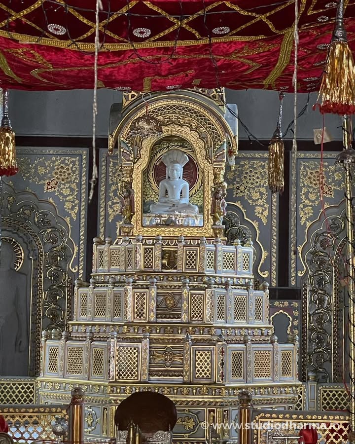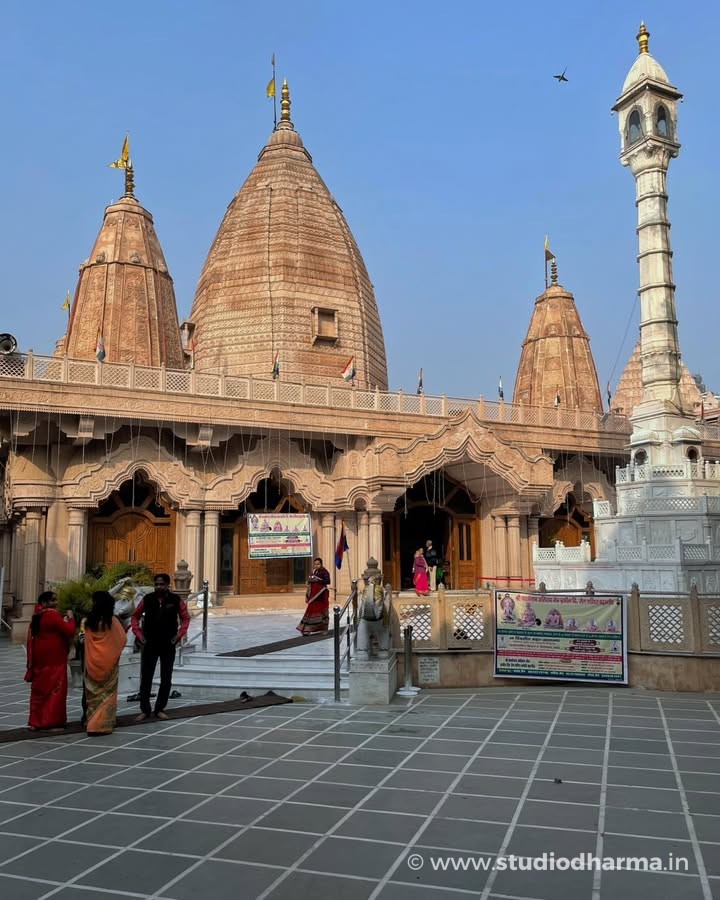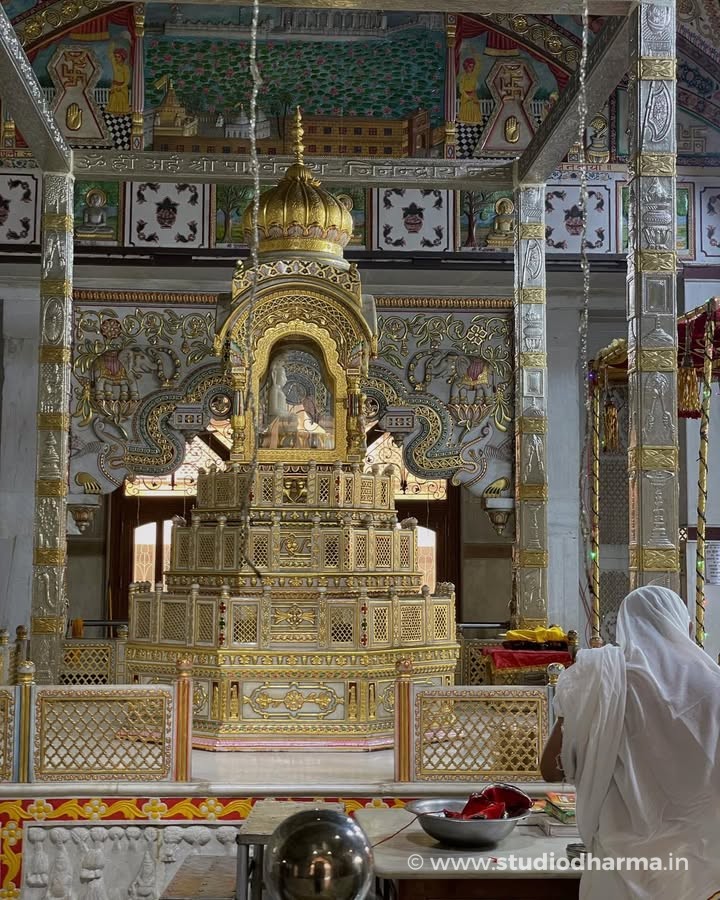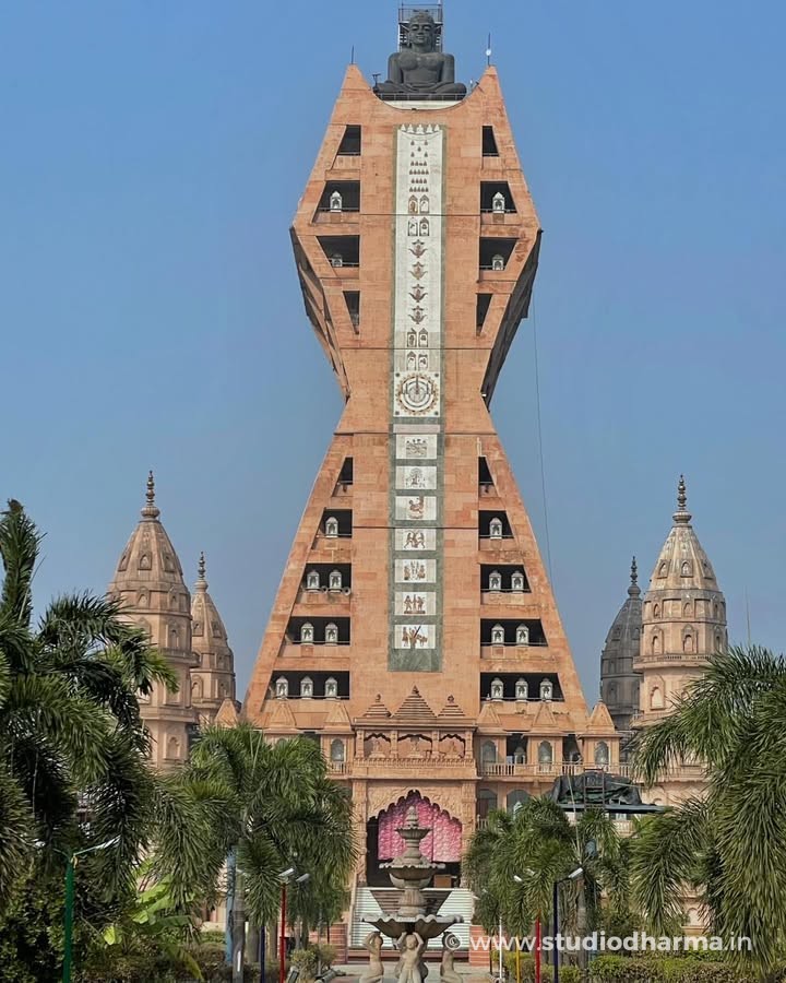 Standing alongside this ancient shrine is Trilok Teerth Dham — a monumental modern expression of Jain cosmology. Officially described as rising approximately 317 feet in total, with a significant portion below ground, it represents the three realms of Jain philosophy. At its summit sits a 31-foot idol of Lord Rishabhdev in Padmasana, while a 108-foot Manastambha marks the axis of humility and spiritual ascent.
