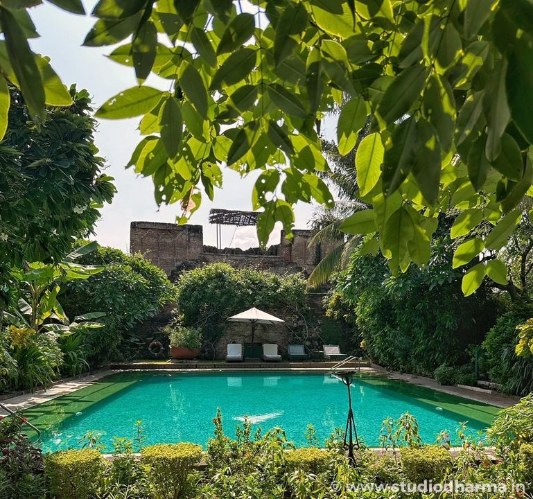 With 19 unique chambers spread across six 18th-century buildings, each room at Ahilya Fort tells its own story. Adorned in whites, pastels, and neutrals, vibrant splashes of color inspired by Maheshwari sarees bring the décor to life.