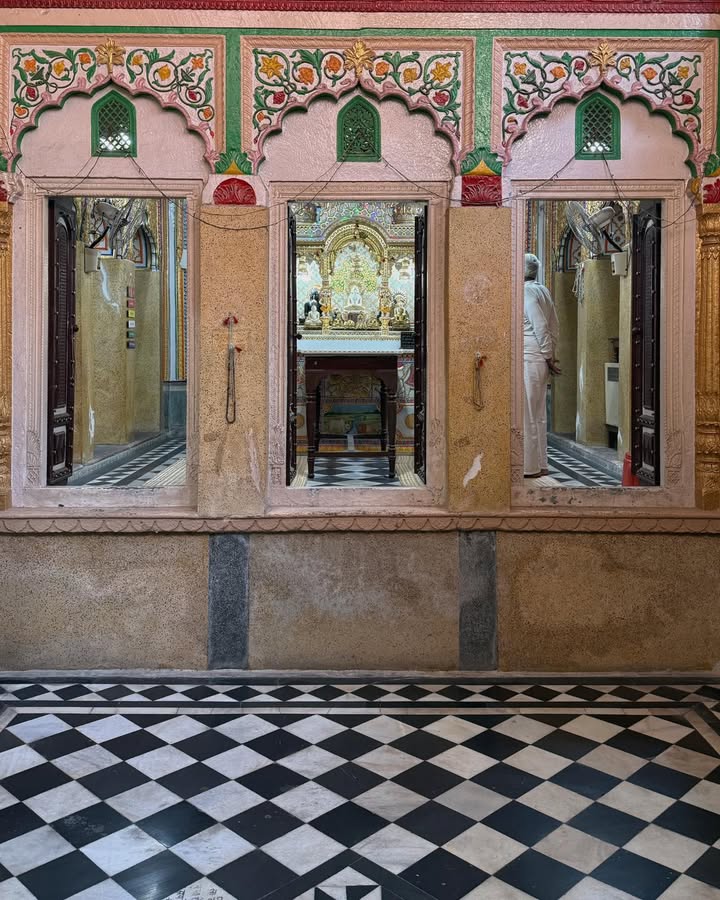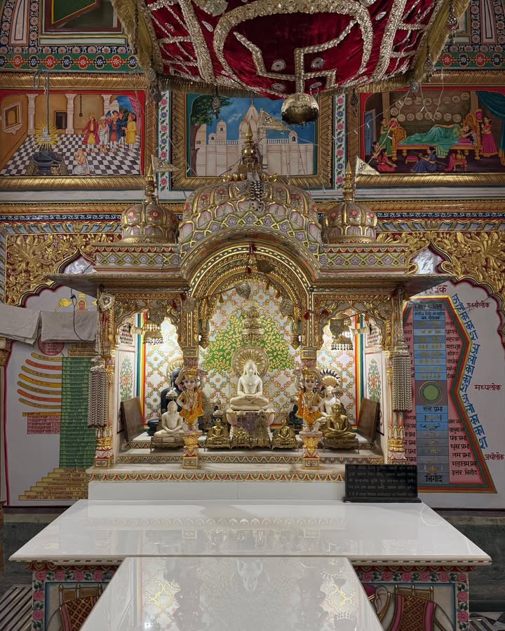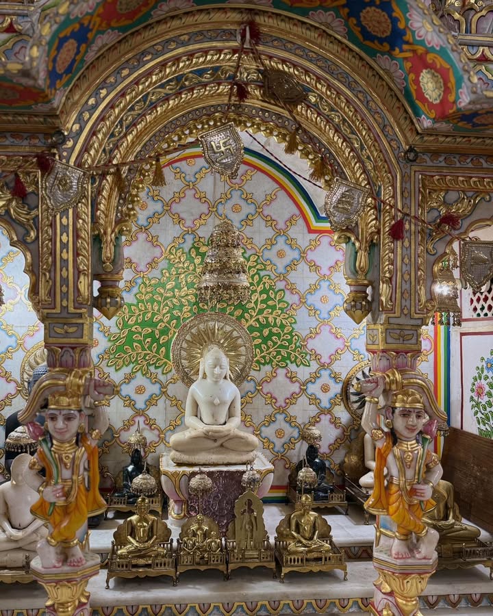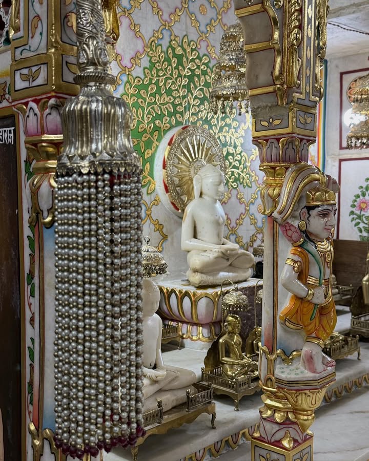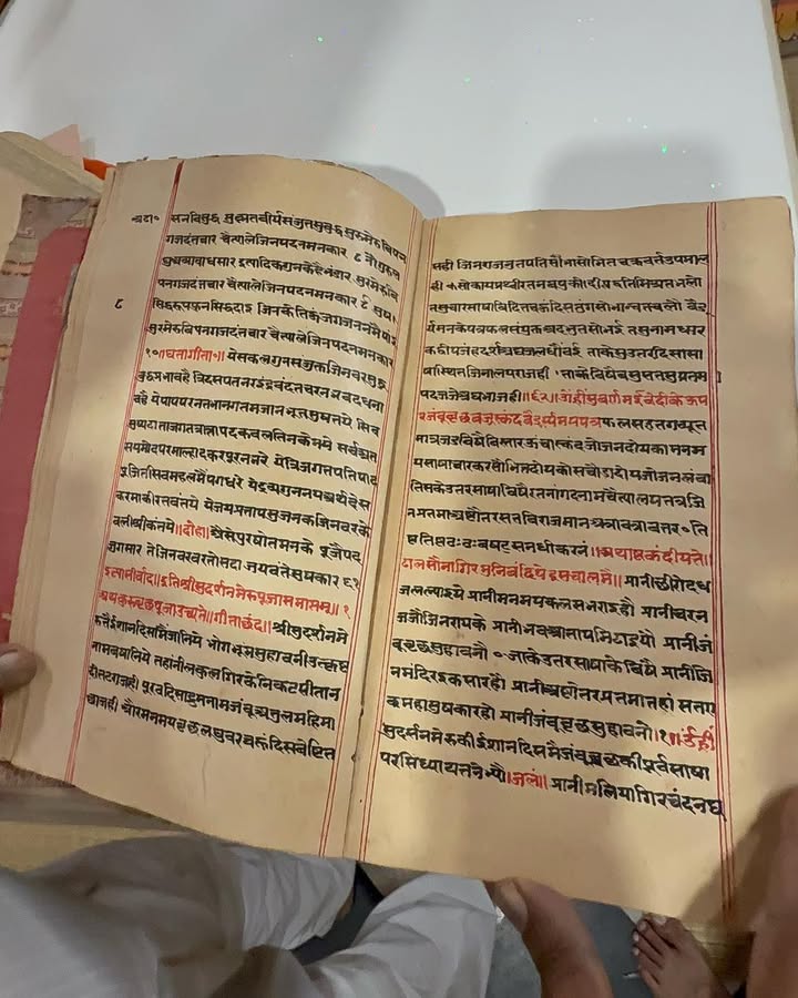 They recall that the temple is believed to be 125–150 years old, built when the Jain population here was thriving. Inside the sanctum lie handwritten, rare Jain shastras, preserved with devotion rather than archival tools — fragile, precious, and carrying the breath of the past.