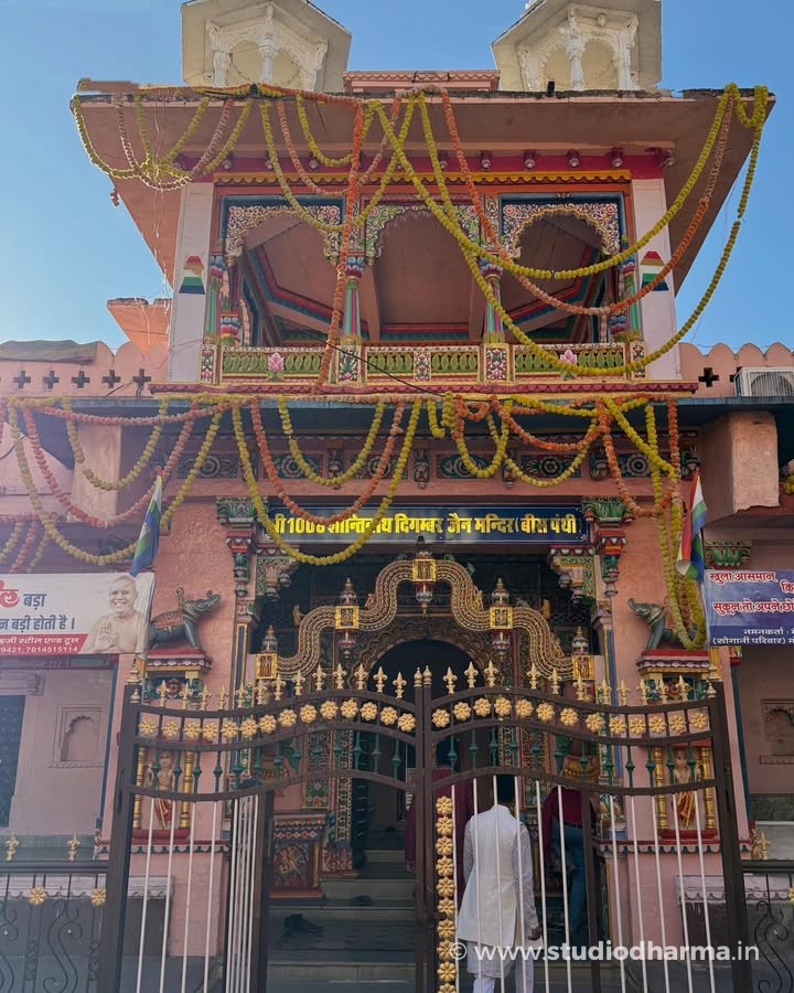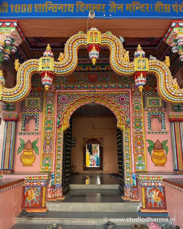 The Shantinath Digambar Jain Temple is believed to date back to the 11th century, a time when temple architecture across the Malwa and Hadoti region flourished under powerful regional patrons and wealthy Jain merchant communities. Though the entrance appears modest at first glance, the moment one approaches the threshold the experience changes completely.