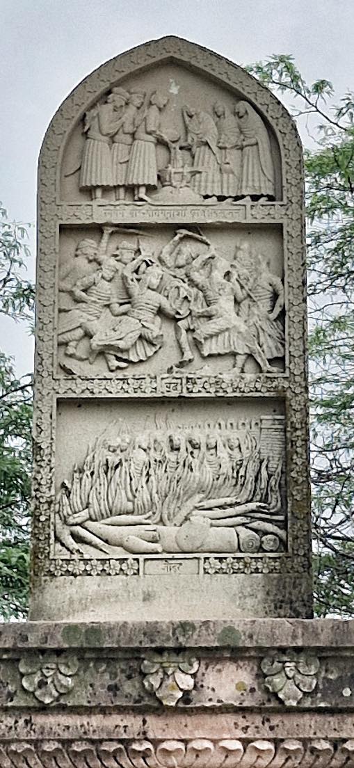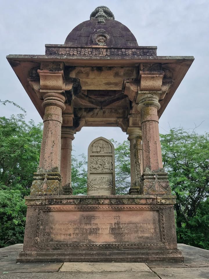 Today, a Jauhar Memorial stands inside Chanderi Fort, built in Vikram Samvat 1588 under the patronage of the rulers of Gwalior. The stone carving within the memorial depicts three scenes — the women’s Jauhar at the base, the battle between Babur and Medini Rai’s armies in the middle, and the king and queen offering prayers to Lord Shiva at the top. It stands as an eternal symbol of courage and dignity.