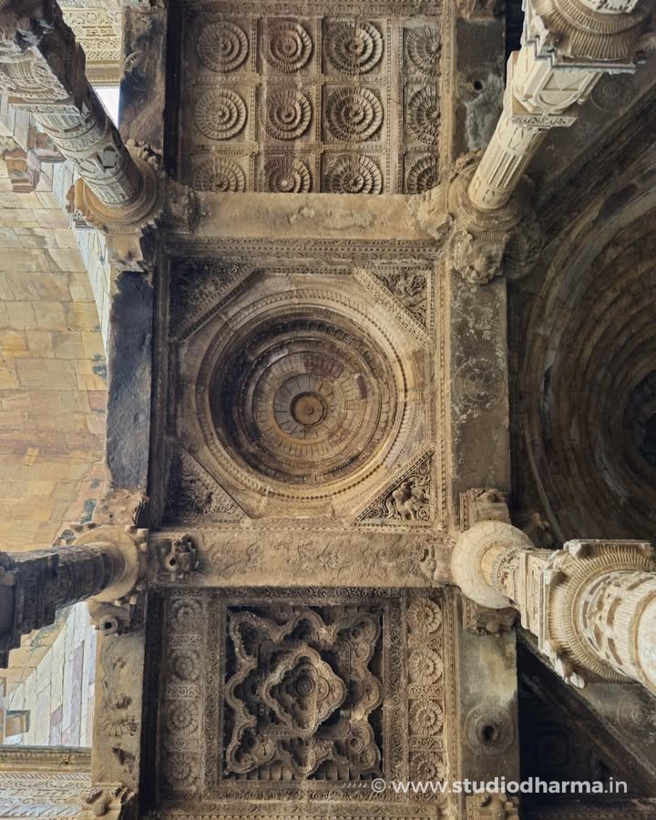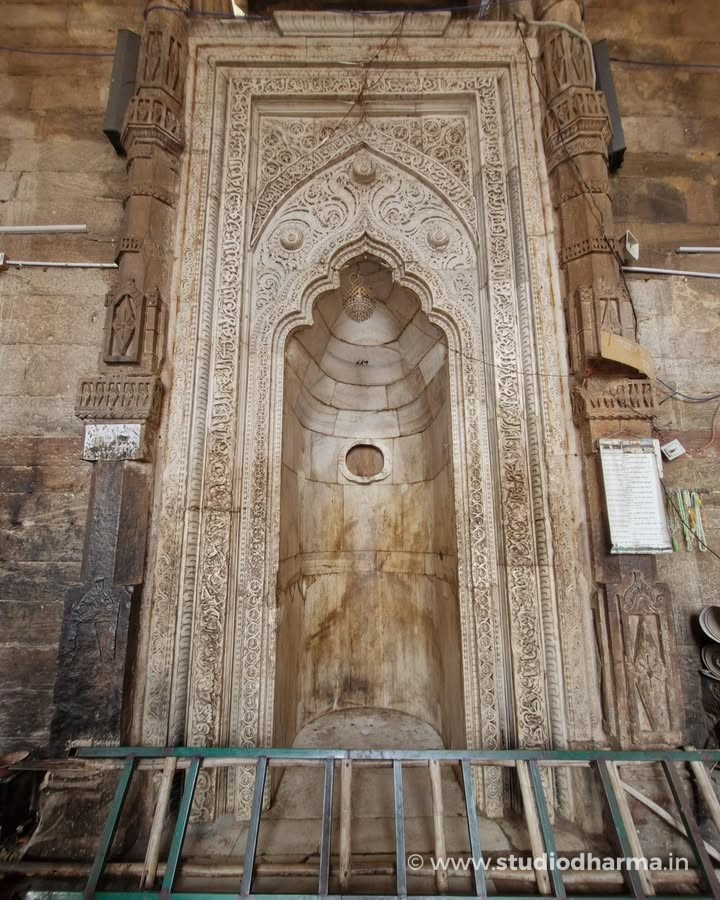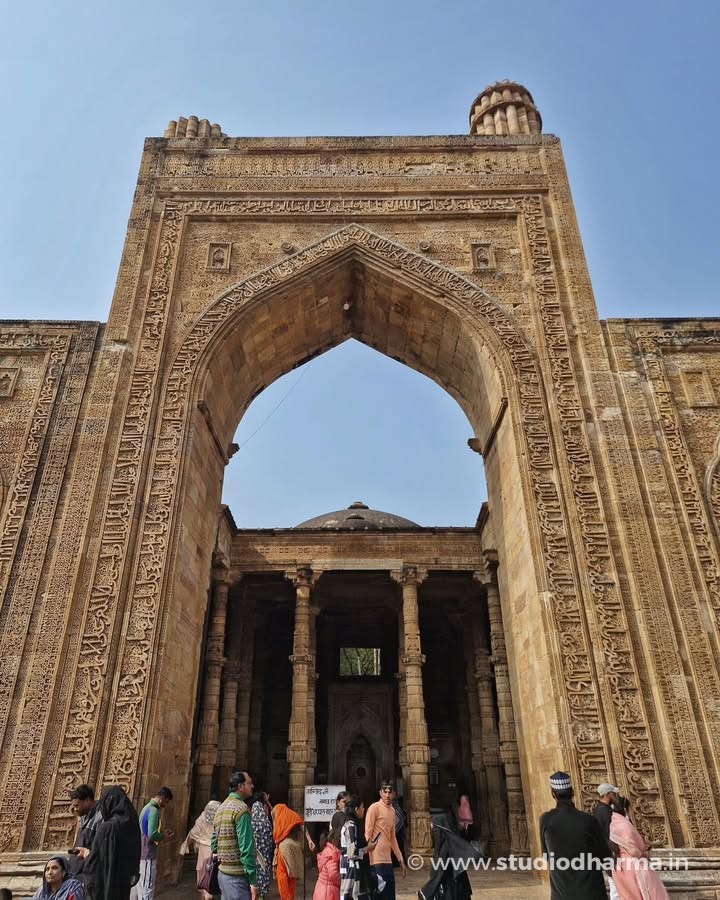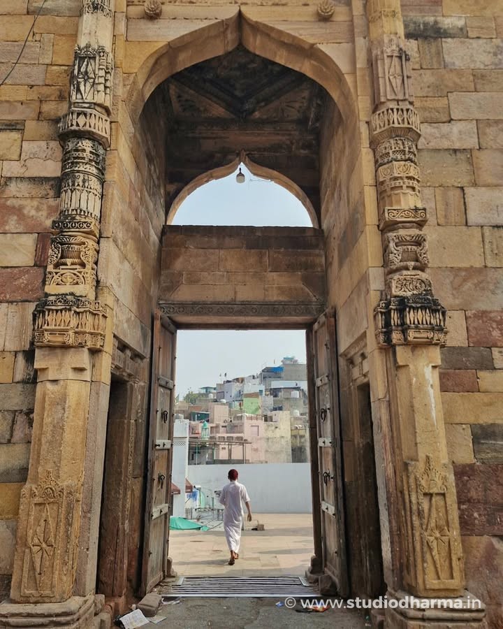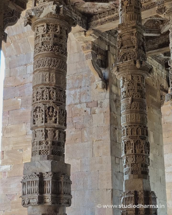 Even today the interior of the monument reveals traces of that earlier world. The prayer hall stands on hundreds of intricately carved pillars displaying motifs typical of Hindu and Jain temple architecture. Archaeologist Alexander Cunningham suggested that many of these pillars may have come from dozens of earlier temples in the region, making the structure one of the earliest examples of architectural reuse in Indo-Islamic monuments.