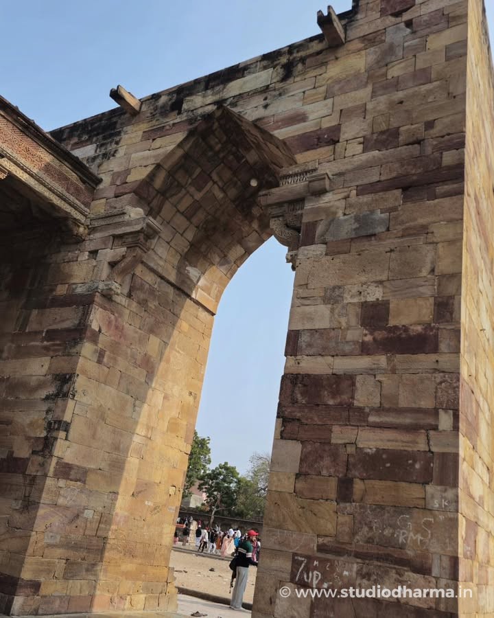In 1213 CE Sultan Iltutmish further transformed the structure by adding the magnificent screen wall with pointed arches, marking an important early experiment in Indo-Islamic architecture.