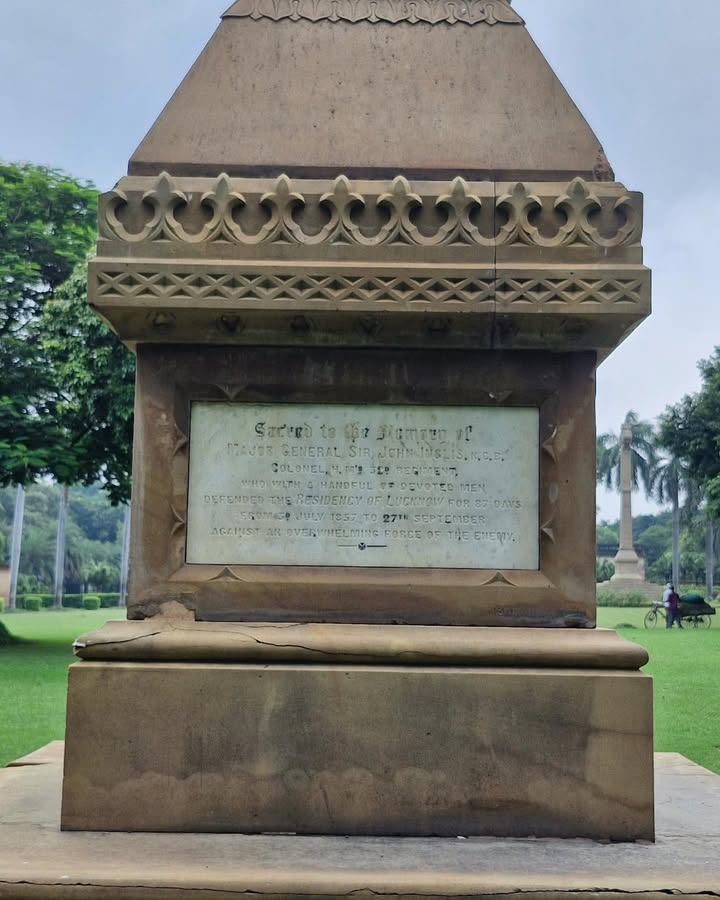 लखनऊ रेजीडेंसी परिसर में, संग्रहालय भवन के सामने स्थित एक छोटा-सा पत्थर का क्रॉस इतिहास की बहुत बड़ी कहानी अपने भीतर समेटे खड़ा है। यह स्मारक मेजर जनरल सर जॉन इंग्लिस और उनकी पत्नी की स्मृति में बनाया गया था — वही इंग्लिस जिन्होंने 1857 के विद्रोह के दौरान रेजीडेंसी की कमान उस समय संभाली, जब सर हेनरी लॉरेंस घावों के कारण चल बसे।