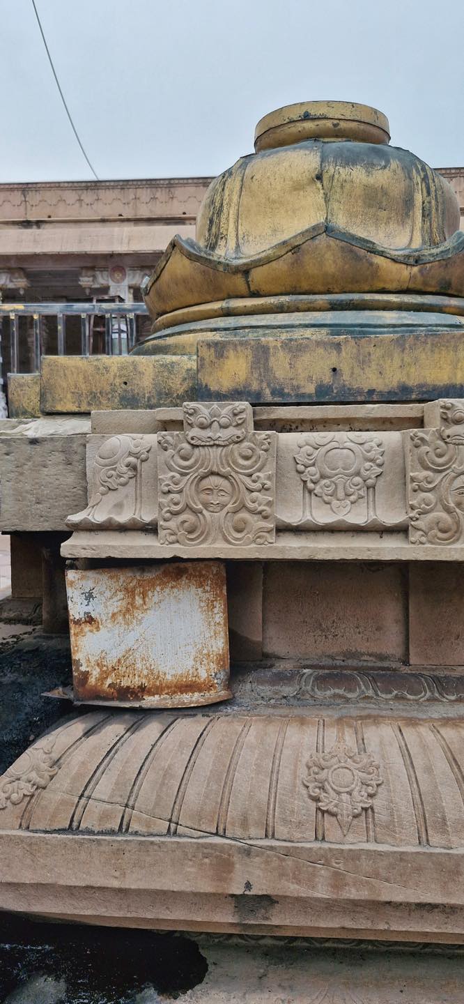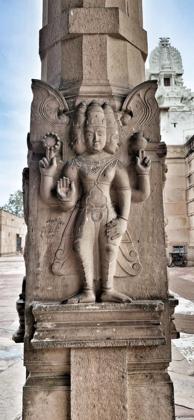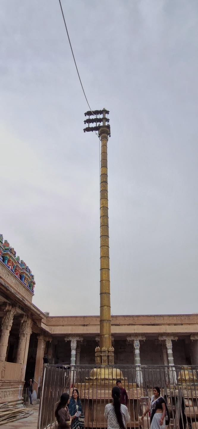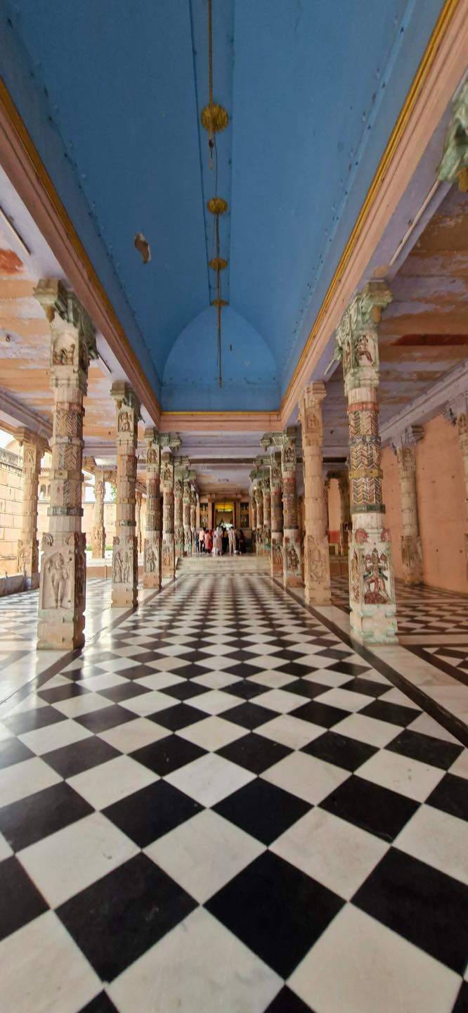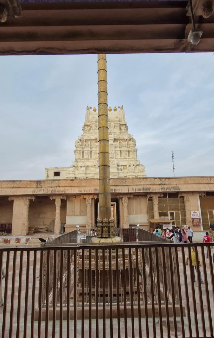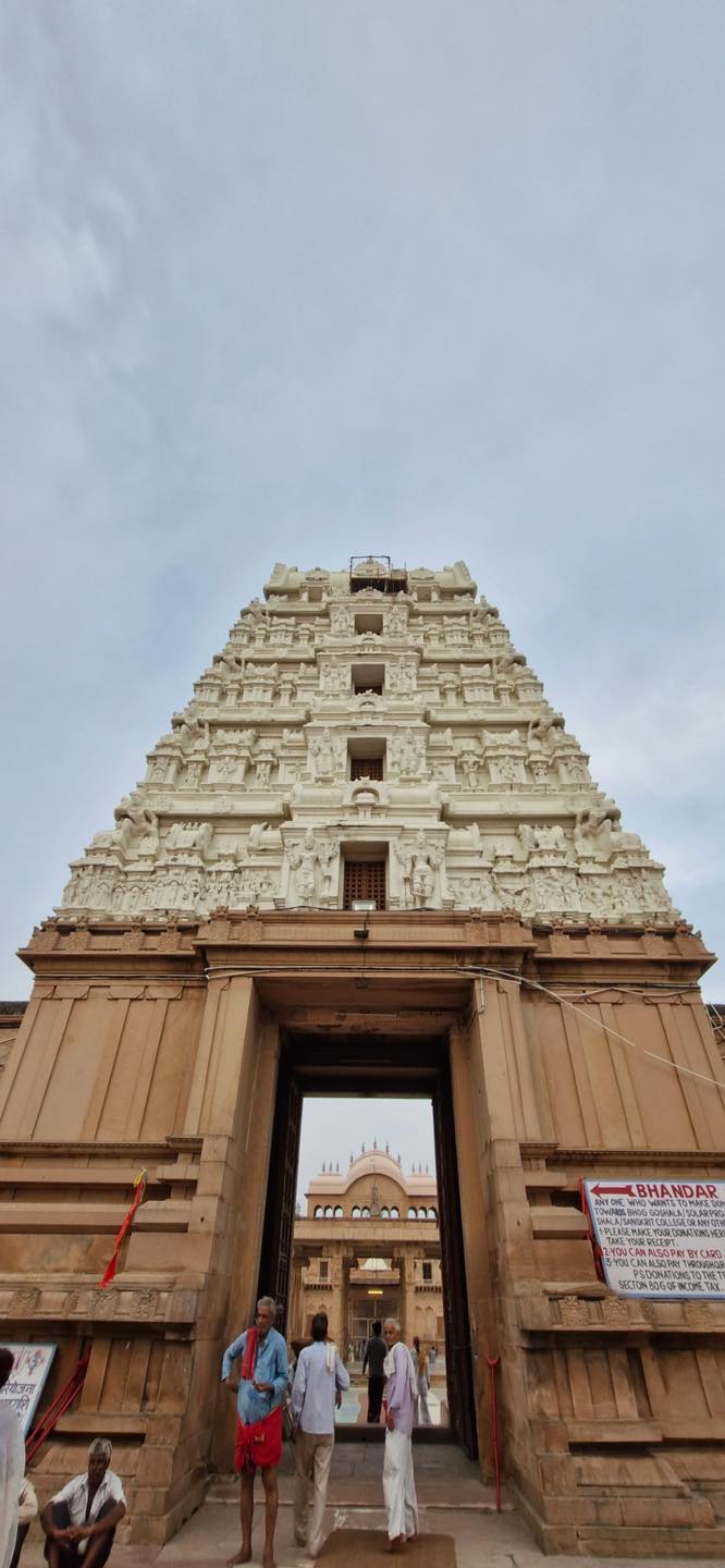Constructed between 1845 and 1851 at a cost of ₹45 lakh, the Rangji Temple in Vrindavan was built by Seth Radha Krishna and Seth Govindadasa of Madras under the guidance of Sri Rangadeshik Swamiji . Modeled on the iconic Sri Ranganathaswamy Temple of Srirangam, it blends Dravidian and North Indian architectural styles, featuring eight gopurams and a towering gold-plated flagstaff .