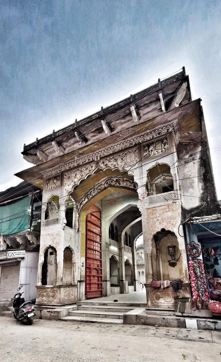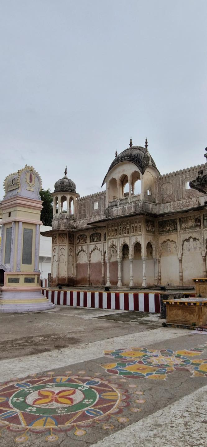 The Rangnath Temple in Pushkar—also known as the Sri Ranganathaswamy Temple or Rangji Temple—is a rare example of South Indian Dravidian architecture in Rajasthan. It was commissioned in 1823 by Seth Puran Mal Ganeriwal of Hyderabad . The temple blends Dravidian, Rajput, and Mughal styles in a striking fusion—featuring a towering gopuram, intricately carved pillars, frescoes, and Chhatris atop the walls .