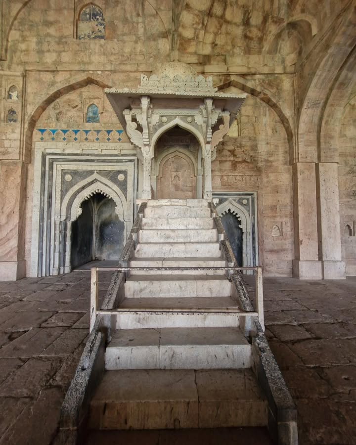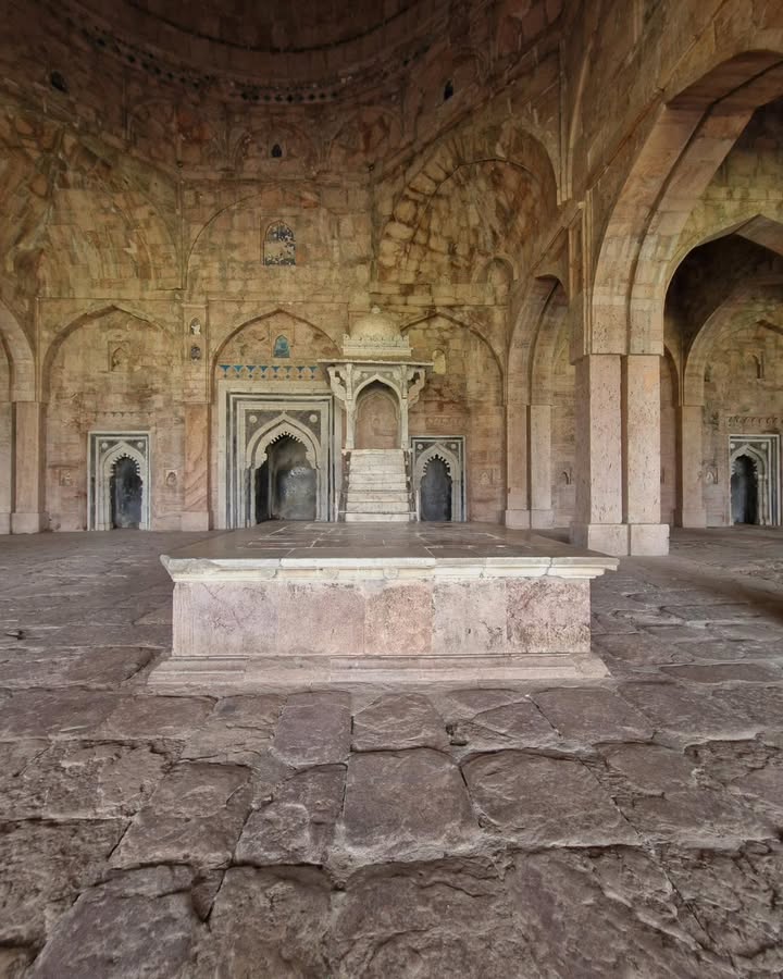 इस भव्य मस्जिद का वास्तविक स्वरूप महमूद खिलजी के शासन में सामने आया, जिन्होंने 1454 में इसके निर्माण को पूरा करवाया। दमार्कस की महान मस्जिद से प्रेरित यह संरचना किसी नकल की तरह नहीं थी — यह प्रेरणा को स्थानीय कला, मालवा की मिट्टी, और अफगान-इस्लामिक स्थापत्य के सुर में ढालने का अद्भुत प्रयास था।