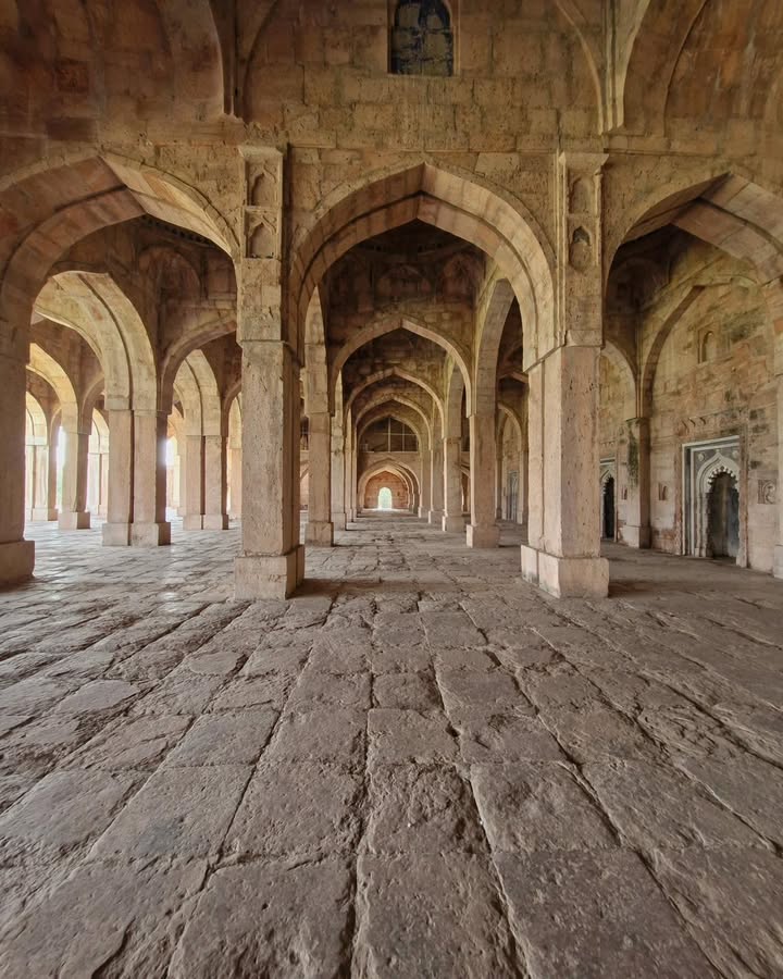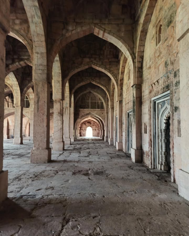 But the vision reached its true form under his successor, Mahmud Khilji, who completed the mosque in 1454. Inspired by the Great Mosque of Damascus, Jama Masjid was not meant to imitate — it was meant to interpret, to translate a Middle Eastern spirit into Malwa’s stone and air. The result was an extraordinary blend of Indo-Islamic and Afghan architectural sensibilities.