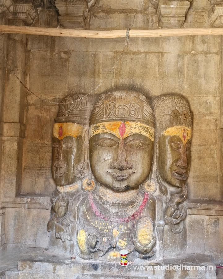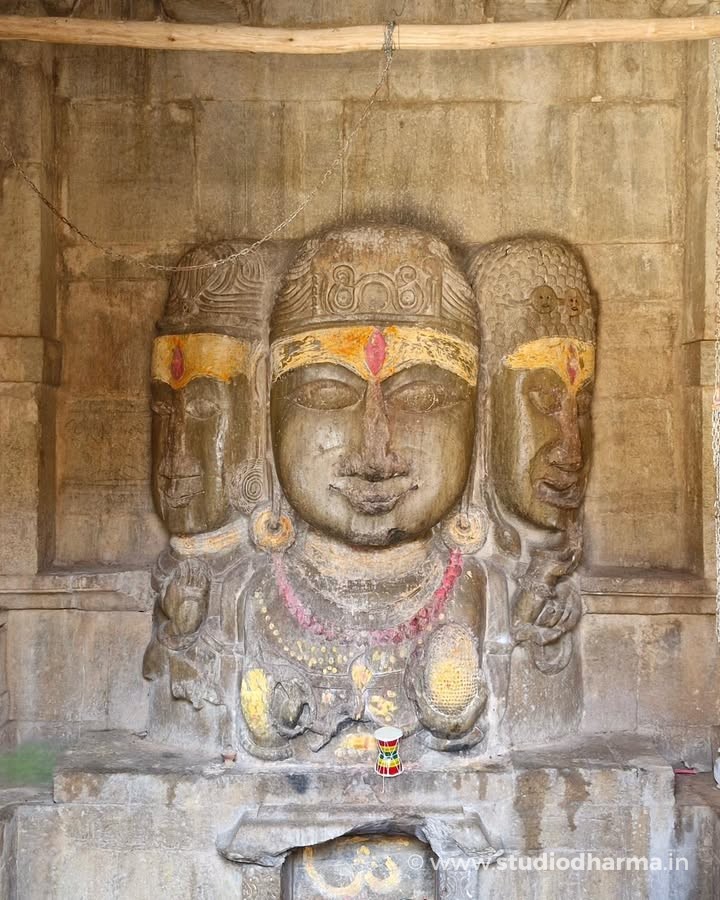त्रिमुखी शिव मंदिर, जिसे समाधीश्वर (समाधि के स्वामी) मंदिर के नाम से भी जाना जाता है, अपने गर्भगृह में भगवान शिव के एक अद्भुत त्रिमूर्ति स्वरूप को धारण किए हुए है। यह तीन मुख—सत्य, वैभव और क्रोध—सृष्टि के संतुलन का प्रतीक हैं, जो शिव की दिव्यता को पूर्ण रूप से दर्शाते हैं।